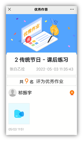 对于学生提交的作业可以是音频、视频或图片形式的,教师可进行批改的方式由文字、音频等多种形式。不但可以在《人人通空间》 APP内进行查看,而且查看是以时间为序进行排列,学生可以非常方便的查看任何一次作业情况,并可以方便的分享到微信群的等等载体,适合进行广泛的宣传与分享。
